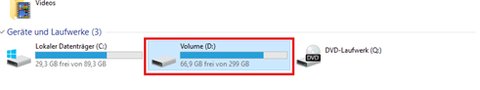 3. Wählen Sie das richtige Volume aus. (Im Beispiel Volume (D:))