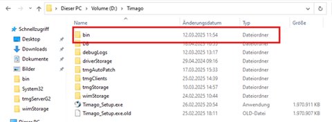 5. Im Ordner „Timago®“ navigieren sie in den Ordner „bin“
