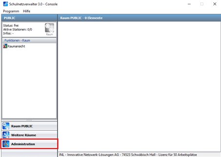 Um zu sehen, ob die Installation erfolgreich war, öffnen Sie die snv®Console und klicken unten links auf Administration.