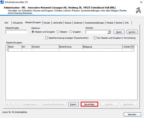 | Neuanlage | Neue Klasse oder Gruppe anlegen |