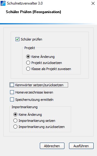 Schüler prüfen Mit dieser Option werden die dem Schüler zugeordneten Objekte überprüft. Siehe Schüler-Stammblatt-Info