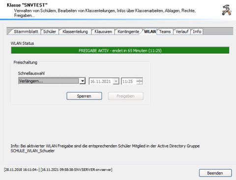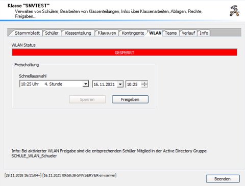 | Freigaben für Klasse “SNVTEST” (Schulkürzel in diesem Handbuch=SCHULE) | |