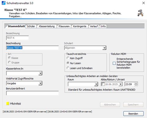 | INL_SNVTEST$ | Pfad der Freigabe zeigt auf das Klassenverzeichnis. Wird benötigt für die Bereitstellung des Klassenlaufwerks, i.d.R. Laufwerk K: für Lehrer |