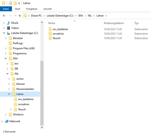 | snv_testlehrer$ | Pfad der Freigabe zeigt auf das Homeverzeichnis des Lehrers. Diese Freigabe wird benötigt für den direkten Zugriff auf das Homeverzeichnis, i.d.R. Laufwerk H: |