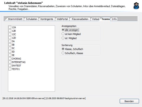 Lehrer prüfen Mit dieser Option werden die dem Lehrern zugeordneten Objekte überprüft. Siehe LehrerStammblatt-Info.