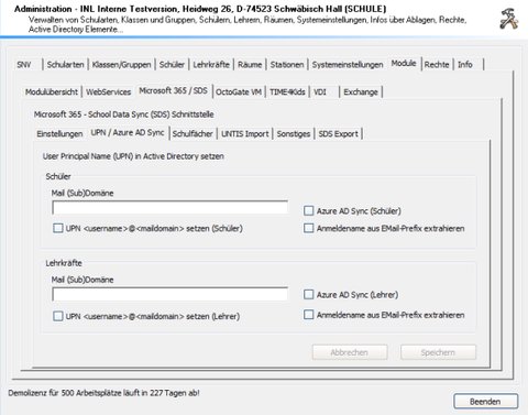 - Definition/Konfiguration sowie die Zuweisung von UPN-Suffixen für Lehrer und Schüler