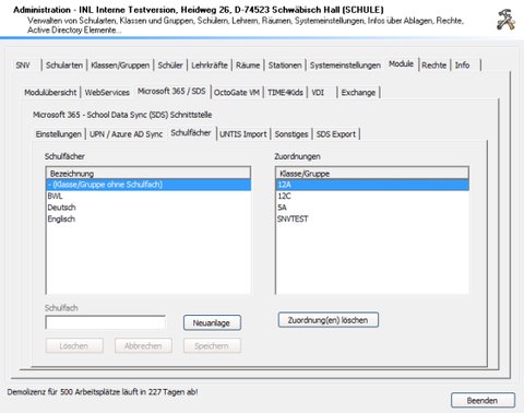 - Anlegen von Schulfächern