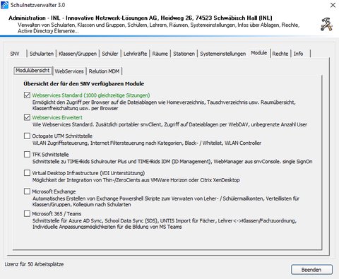 Mit Hilfe der Modulübersicht lassen sich zahlreiche Module für den Schulnetzverwalter snv® einsehen und verändern.