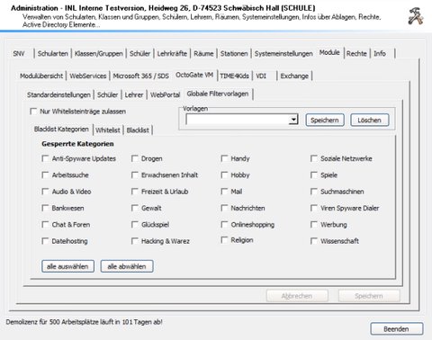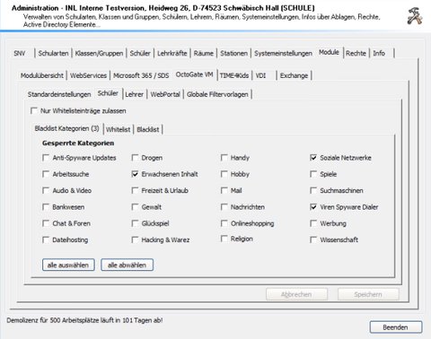 Mit der OctoGate-Schnittstelle in der snv®-Console kann der Internetzugriff von Lehrern und Schülern gesteuert werden. Lehrkräfte haben die Möglichkeit den Internetzugriff von Schülern klassenraumbezogen zu steuern.