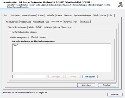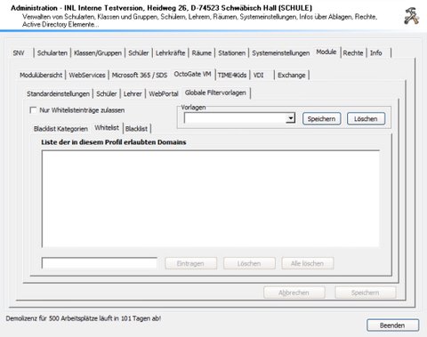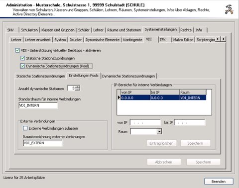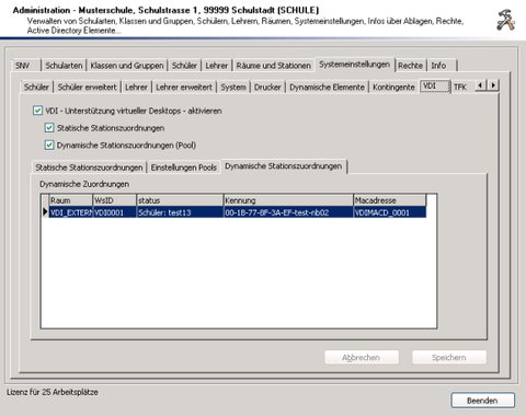 Verwenden Sie die das Zusatzmodul VDI, um die Unterstüztung virtueller Desktops durch den Schulnetzverwalter zu aktivieren. Das Register “VDI” wird im Menü nur angezeigt, wenn das Modul durch die Lizenzdatei freigeschaltet wurde.