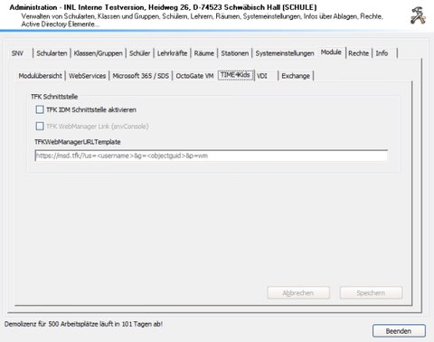 | TFK WEbManager Link (snvConsole) | Diese Funktion ergänzt das Menü der snvConsole um den Menüpunkt “TIME for kids Web-Manager” |