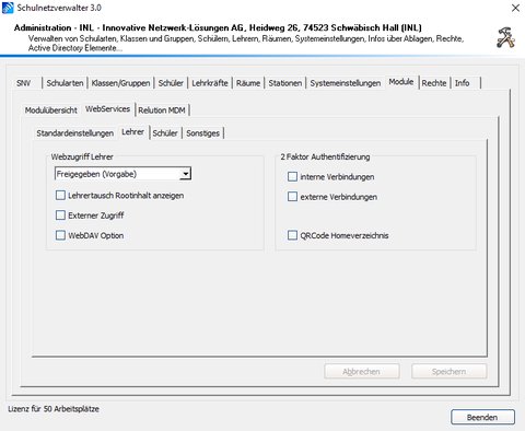| Postfächer Lehrkräfte Schnittstelle aktivieren | Aktiviert die Schnittstelle für die Lehrkräftepostfächer |