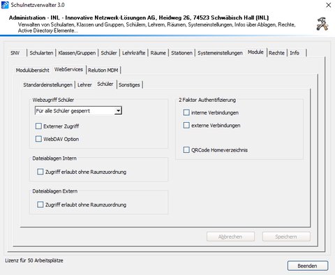 | Postfächer Schüler Schnittstelle aktivieren | Aktiviert die Schnittstelle für die Schülerpostfächer |