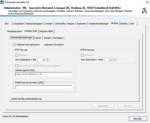 | WebServices aktivieren | Muss aktiviert sein, um die WebServices nutzen zu können |