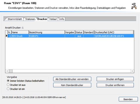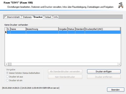 | Drucker entfernen | Hier können Sie einem dem Raum zugewiesenen Drucker wieder entfernen |