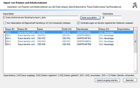 Klicken Sie auf “Importvorgang starten”. Der snv® beginnt nun die Räume bzw. Arbeitsstationen hinzuzufügen. snv®-Scriptengine führt den Importvorgang durch
