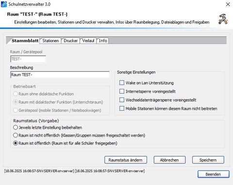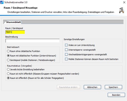 | Internetsperre voreingestellt | Gibt an, ob als Standard (ohne Eingriff eines Lehrers) die Internetsperre in diesem Raum aktiviert, oder deaktiviert ist |