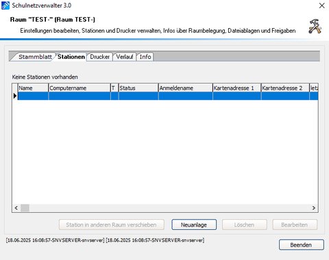 Als Stationen werden die Arbeitsstationen in einem Raum bezeichnet. Mit diesem Programm-Modul können die Arbeitsstationen verwaltet werden.