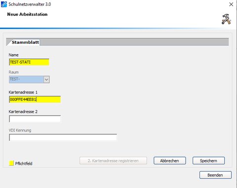 | Kartenadresse 2 | Hier kann eine zweite Netzwerkkartenadresse für die gleiche Arbeitsstation eingetragen werden. Das macht in der Regel dann Sinn, wenn Sie wechselweise mit einem Notebook per fester Verkabelung (=interner Netzwerkadapter) und per WLAN (=zweiter Netzwerkadapter) auf das Netzwerk zugreifen |