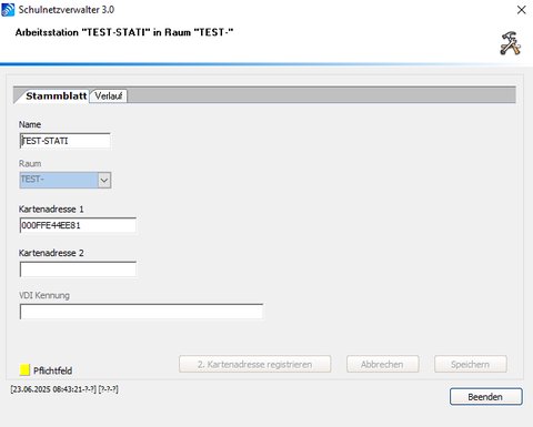 | Kartenadresse 2 | Siehe Stammblatt Arbeitsstation |