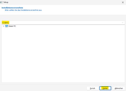 Empfehlung: Installieren Sie snv® nicht auf der Systempartition des Servers.