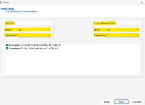 Legen Sie fest, wo die Daten von Schülern und Lehrkräften gespeichert werden sollen.