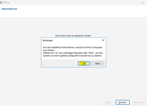Während der Installation kann ein Neustart des Servers notwendig sein.