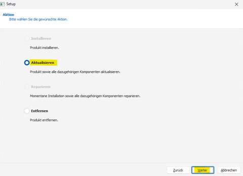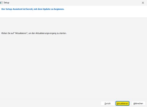 **Hinweis: Sofern es sich nur um ein Build Update der Datenbank handelt erscheint im Dialog “Reparieren anstelle von Aktualisieren!”
