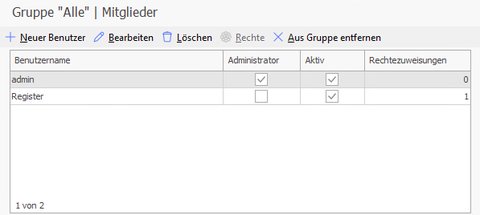 Die Benutzer lassen sich zusätzlich in Gruppen organisieren, um Berechtigungen strukturiert und effizient zu verwalten.