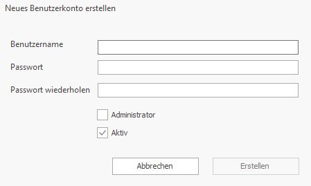 Tragen Sie den Namen sowie das Passwort für den Benutzer ein. Setzen Sie einen Haken bei “Administrator”, wenn der Benutzer Adminrechte besitzen soll, betätigen Sie mit dem “Erstellen”-Button.