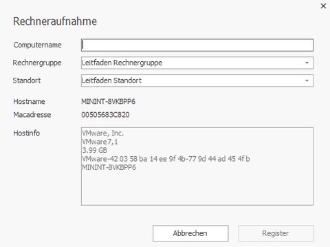 Geben Sie die Rechnerbezeichnung ein, stellen die Richtige Rechnergruppe und Standort ein. Bestätigen Sie mit “Register”.