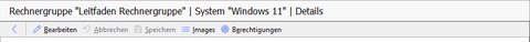 Begeben Sie sich in die gewünschte Rechnergruppe und in die Untergruppe “Betriebssysteme”, mit einem Linksklick auf ein Betriebssystem öffnen Sie die Bearbeitung von diesem.