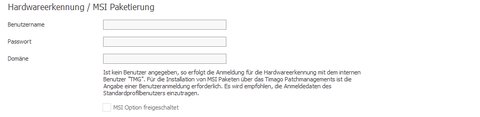| Benutzername | Benutzername des Benutzers in dem die Hardware und die MSI-Pakete identifiziert und installiert werden sollen |
