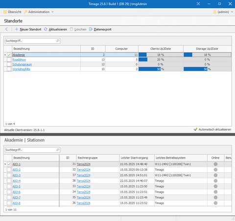 Standorte dienen als zusätzliche Gruppierungsebene für Stationen und ergänzen die Struktur der Rechnergruppe.