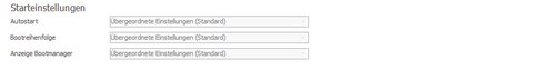 | Autostart | Übergeordnete Einstellung (Standard): Einstellungen der Rechnergruppe werden angewandt Deaktiviert: Deaktiviert Übergeordnete Einstellungen und nutzt eigene |