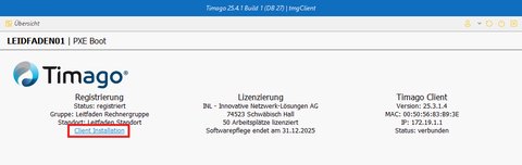 Die Timago®Client Installation wird automatisch durchgeführt. Falls nicht können Sie die Client Installation mit einem Linksklick auf “Client Installation” starten.