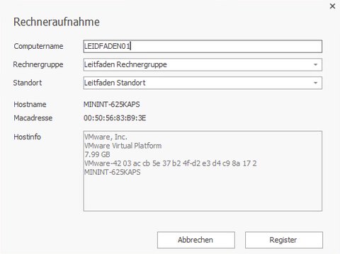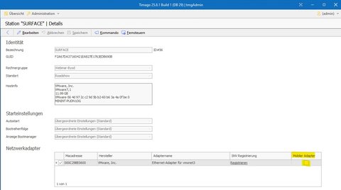 Diese Kennzeichnung ist erforderlich, damit Timago® die aufgenommenen Rechner nicht ausschließlich über die MAC-Adresse, sondern über eine interne GUID identifizieren und korrekt zuordnen kann. Eine Registrierung mehrerer Rechner mit identischer MAC-Adresse ist nicht möglich.