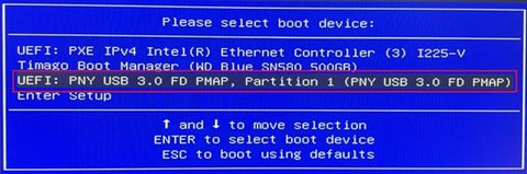 Stecken Sie den USB-Stick in den Client auf dem Sie Timago® installieren möchten. Starten Sie den Client und öffnen das Boot-Menü durch wiederholtes Drücken von F12 beim Hochfahren. Wählen Sie den USB-Stick aus und starten Sie die Installation mit der Enter-Taste.