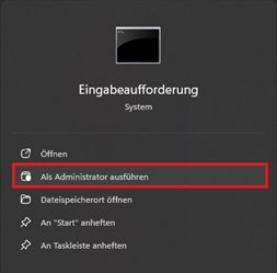 · Klicken Sie mit der rechten Maustaste auf Eingabeaufforderung und wählen Sie Als Administrator ausführen.