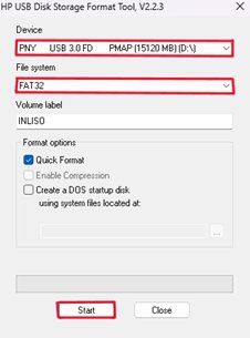 Formatieren Sie den USB-Stick, den Sie als Boot-Stick verwenden möchten, in FAT32. Verwenden Sie dazu das Programm HPUSBFW_v2.2.3.exe, das in der vom snpKundenHub heruntergeladenen Datei enthalten ist.