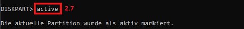 2.7. Geben Sie active ein und drücken Sie Enter (macht den USB-Stick bootfähig).