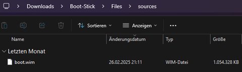Benennen Sie die .wim Datei im Ordner „sources“ durch einen Rechtsklick und Auswahl von Umbenennen in „boot.wim“ um.