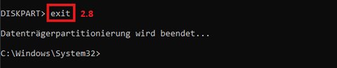 2.8. Geben Sie exit ein und drücken Sie Enter (schließt das Programm).
