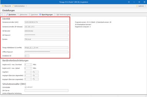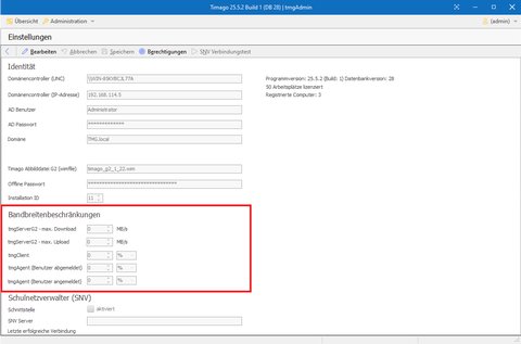 | tmgClient | Geschwindigkeit der Netzwerkkarte des Client mit der er Downloaden darf, wenn er in Timago® steht |