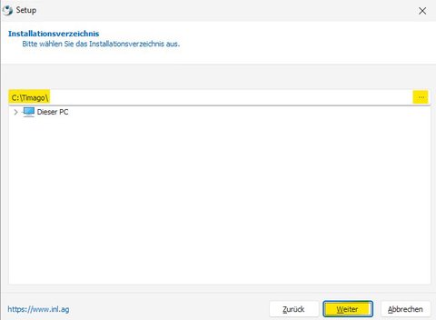 ⚠️ Hinweis: Es wird ausdrücklich empfohlen, Timago® nicht auf der Systempartition zu installieren.