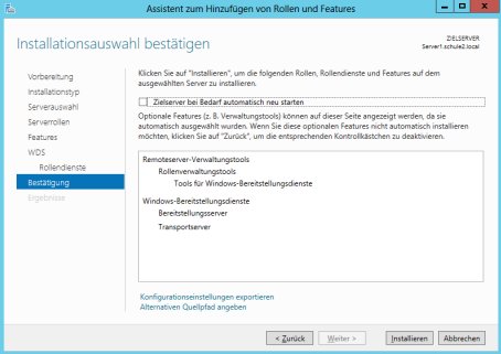 Die Remoteserver- und Rollen-Verwaltungstools und die Tools für die Windows-Bereitstellungsdienste inkl. dem Bereitstellungs- und dem Transportserver werden nun installiert.