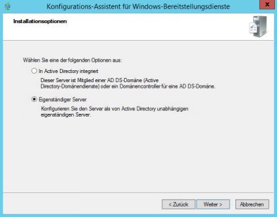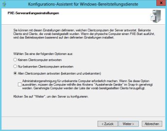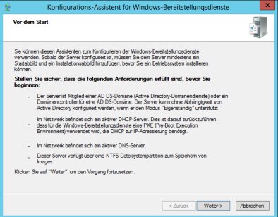 Es öffnet sich das Konfigurationsfenster der Windows-Bereitstellungsdienste.