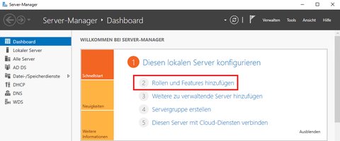 Wechseln Sie zu “Rollen und Features hinzufügen”. Der Assistent zum Hinzufügen von Rollen und Features wird geöffnet.