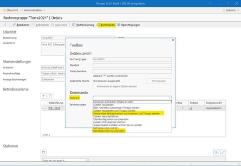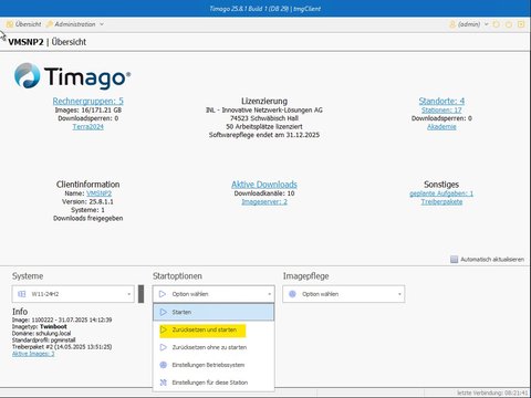 Das Zurücksetzen des Images kann entweder direkt am Timago® Client oder per Kommando über die Administrationsoberfläche durchgeführt werden.