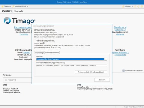 Das Treibermanagement von Timago® ermöglicht den gemeinsamen Betrieb unterschiedlicher Rechnertypen innerhalb einer Rechnergruppe, auch bei abweichender Hardwareausstattung. So können Sie ein einheitliches Betriebssystem-Image für verschiedene Geräte verwenden und dennoch eine optimale Treiberunterstützung sicherstellen.